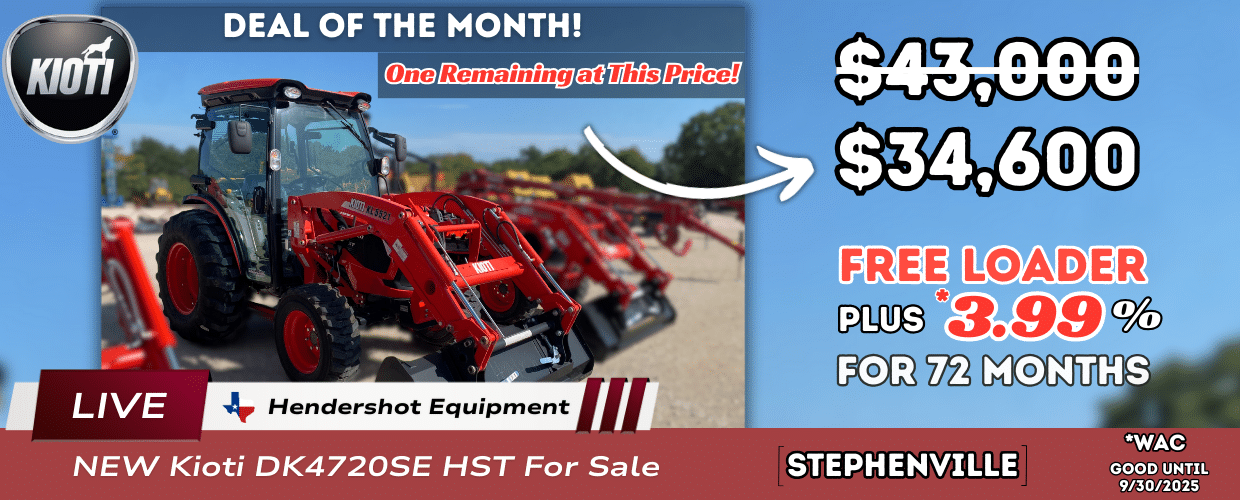 Hendershot Equipment and Rental is a premier agriculture equipment dealership in Stephenville & Decatur, Texas. In addition to new and used tractors for sale, balers and hay equipment for sale, Hendershot Equipment and Rental also offers construction equipment for sale and Polaris ATVs, Rangers, UTVs for sale. We offer a wide variety of equipment, but also pride ourselves in offering top name brands like Case IH, KIOTI, JCB, Vermeer, Mahindra, Polaris, GEHL, Hustler Turf Equipment, Genie, Rhino, and STIHL lawn equipment.