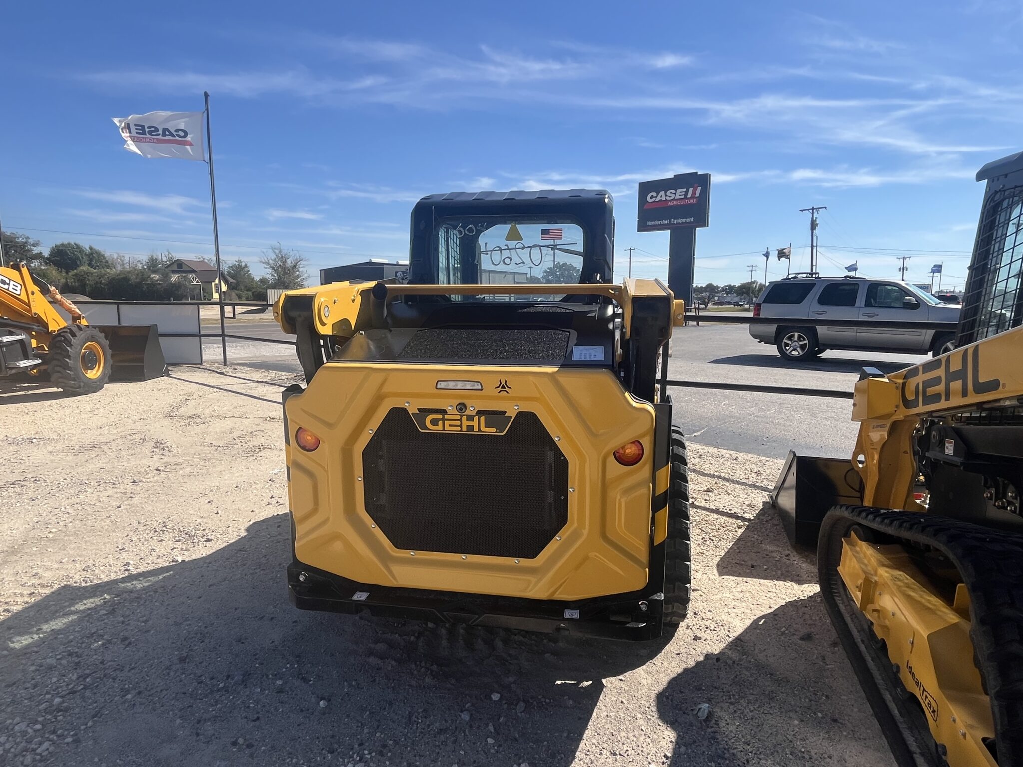 Key features include GEHL’s new vertical lift-arm design, improved hydraulics, simplified service access, ideal track tensioning (IdealTrax), and enhanced operator visibility via an updated cab design