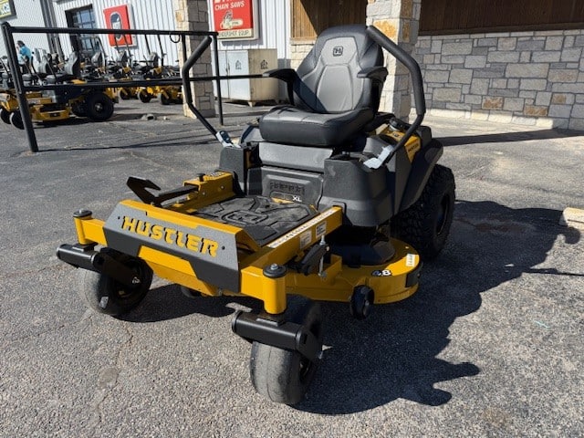 Equipped with a 21.5 HP Kawasaki V-Twin engine and standard Flex Forks® suspension, this mower provides smoother operation, dependable power, and Hustler’s proven durability.